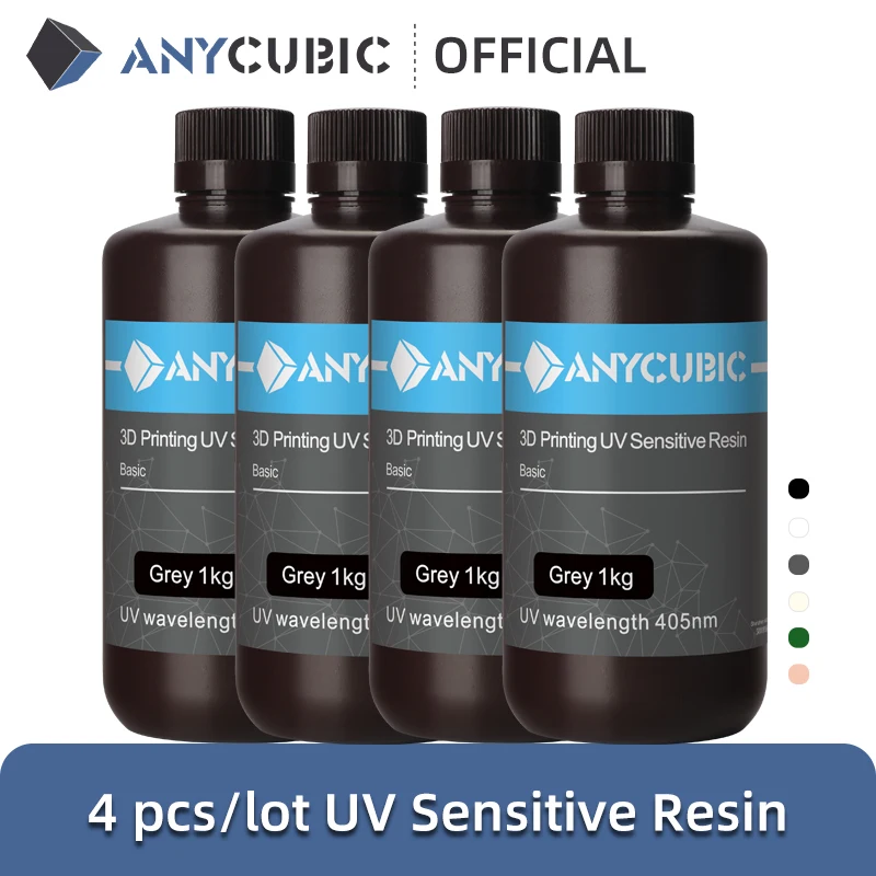 - ANYCUBIC 4 قطعة/الوحدة 40nm الأشعة فوق البنفسجية الراتنج للطابعة LCD ثلاثية الأبعاد السائل فوتوبوليمير الراتنج ثلاثية الأبعاد مواد الطباعة 1 كجم/زجا…