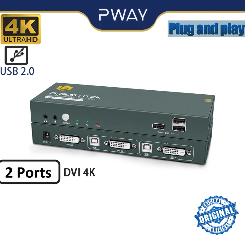 - مفتاح PWAY USB KVM DVI ثنائي 2 في 1 منفذ DVI 1×2 فاصل مع 3 USB2.0 يدعم 4K @ 60Hz لمشاركة ماوس لوحة مفاتيح الطابعة