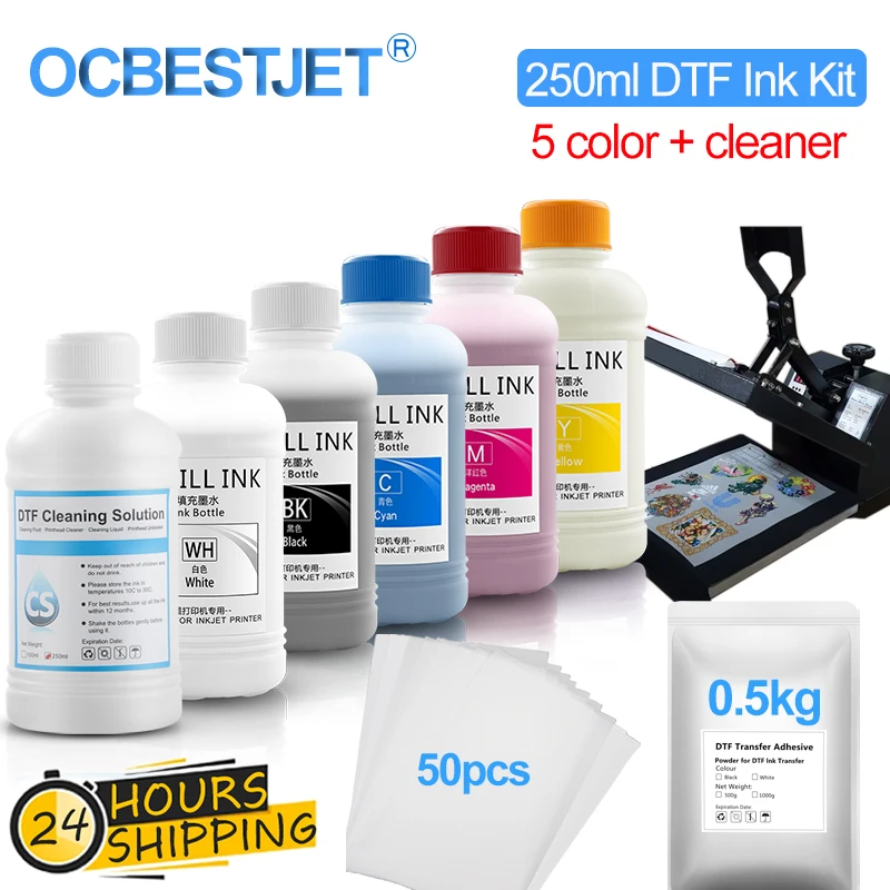 - 250 مللي * 6 DTF الحبر عدة مع مسحوق فيلم نقل الطباعة PET فيلم لإبسون L805 L1800 XP-15000 XP-600 XP600 TX800 3880 7880 7890