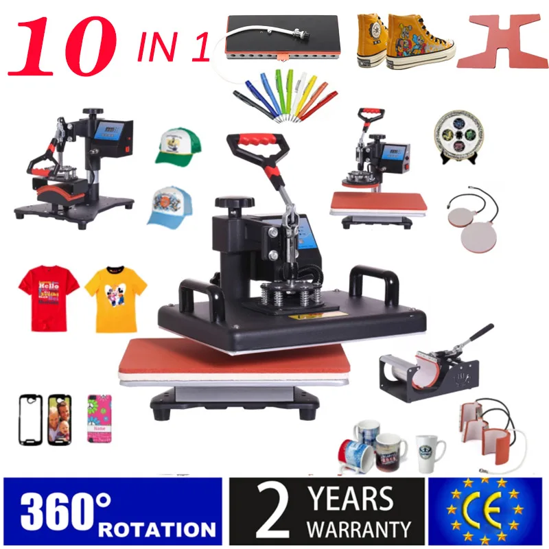 - 10 في 1 كومبو الحرارة الصحافة آلة الحرارية التسامي نقل الطابعة ل غطاء/القدح/زجاجة/تي شيرت/جراب هاتف/القلم/المفاتيح/حذاء