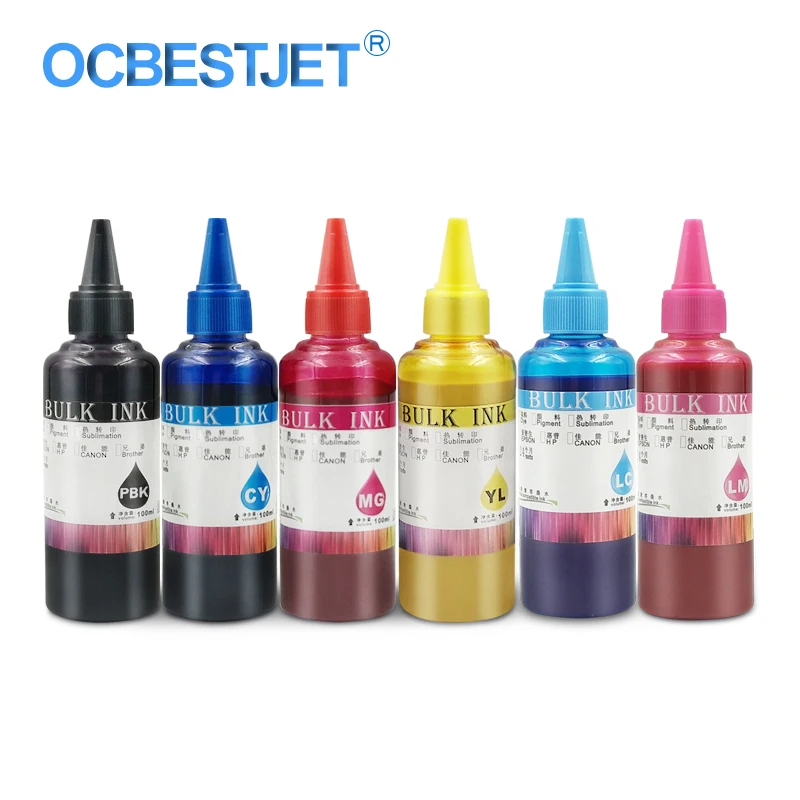 - عبوات حبر طابعة نفث الحبر ، 100 مللي لكل زجاجة ، 6 ألوان/مجموعة ، BK C M Y LC LM